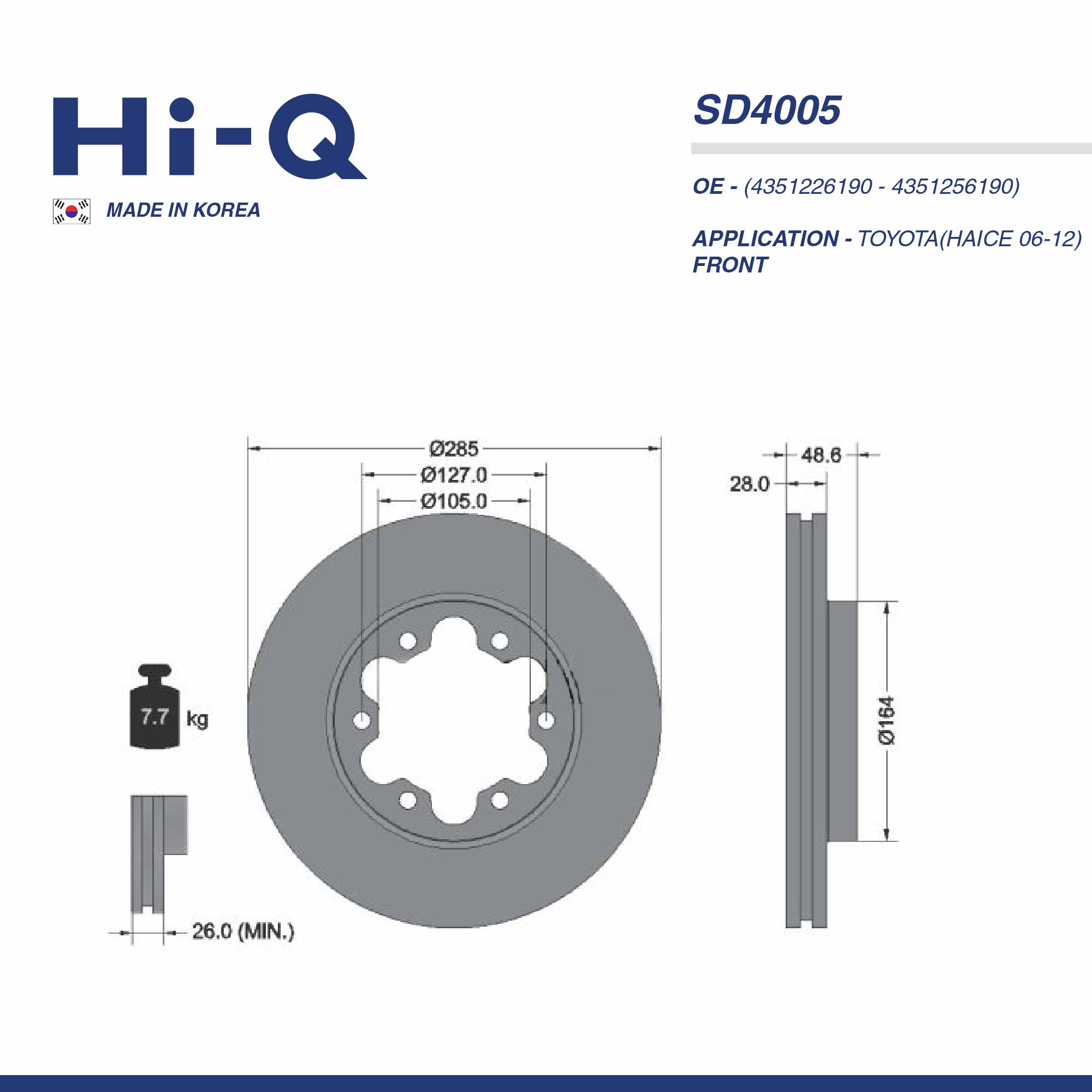 HI-Q DISC SD2028 HYUNDAI(ACCENT 05-10)(I20 08-15) KIA(RIO 05-11) FRTSelect options