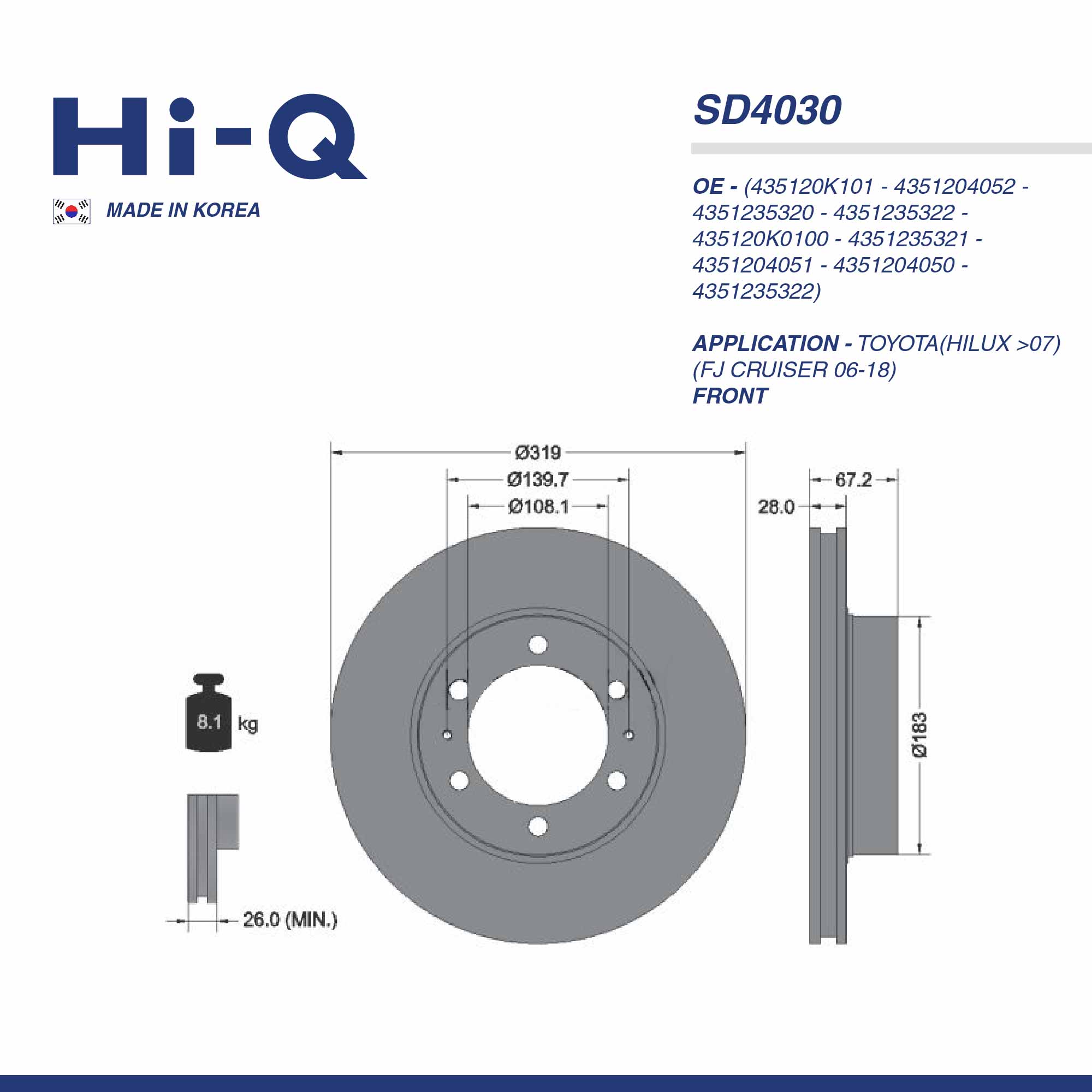 HI-Q DISC SD4030 TOYOTA(HILUX >07)(FJ CRUISER 06-18) FRTSelect options