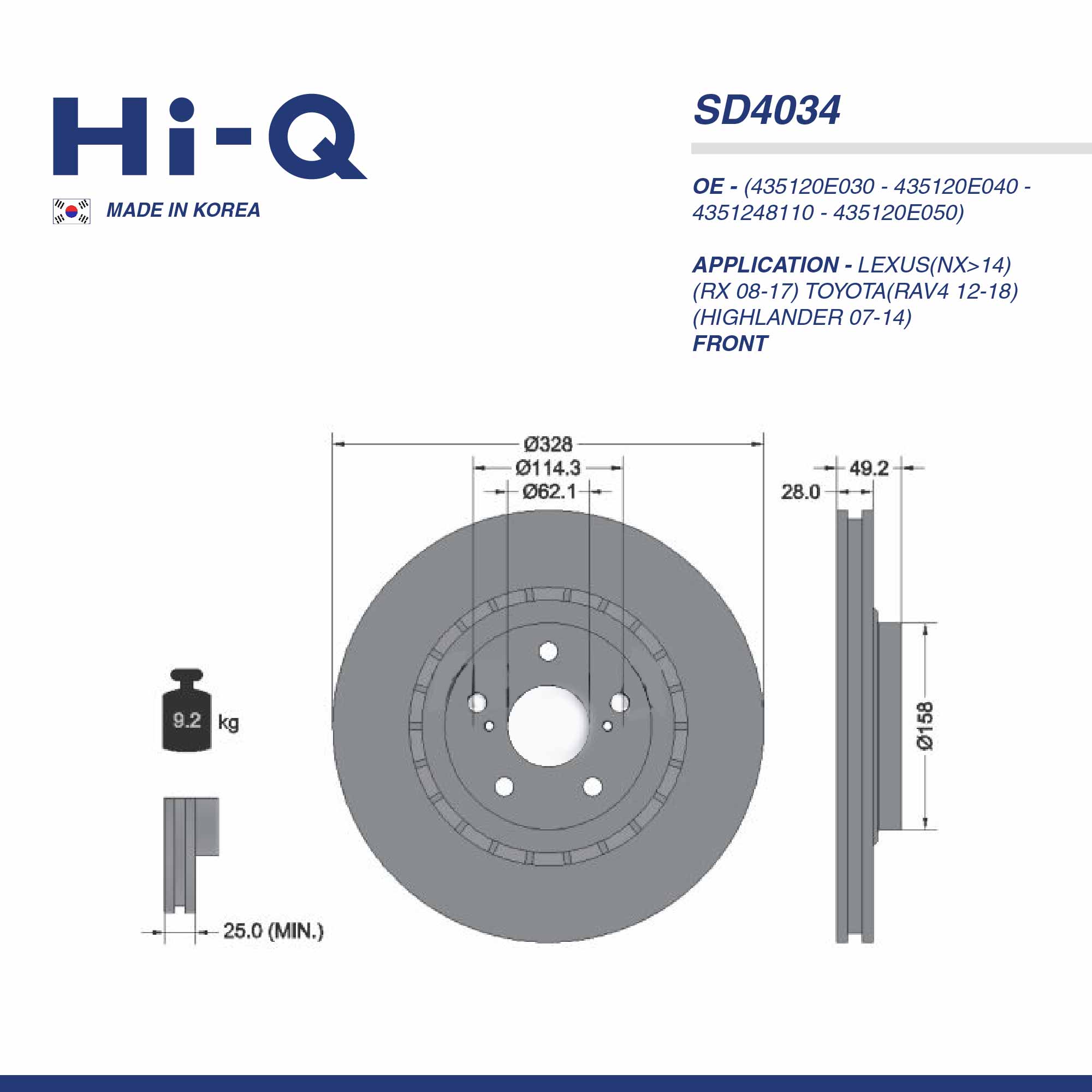 HI-Q DISC SD4034 LEXUS(NX>14)(RX 08-17) TOYOTA(RAV4 12-18)(HIGHLANDER 07-14) FRTSelect options