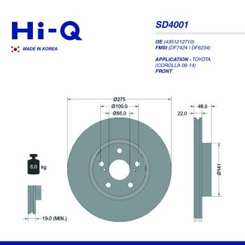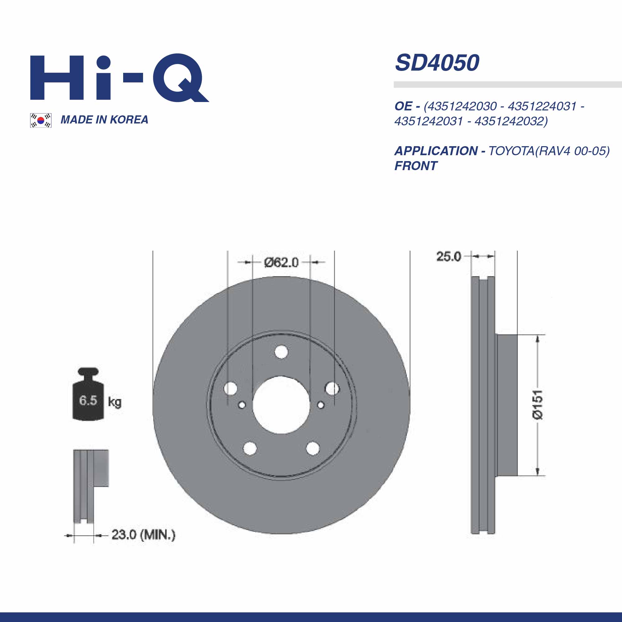 HI-Q DISC SD4021 TOYOTA(CAMRY >06)(RAV4 >06) LEXUS(ES 350 12-18)FRTSelect options