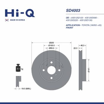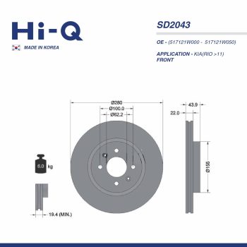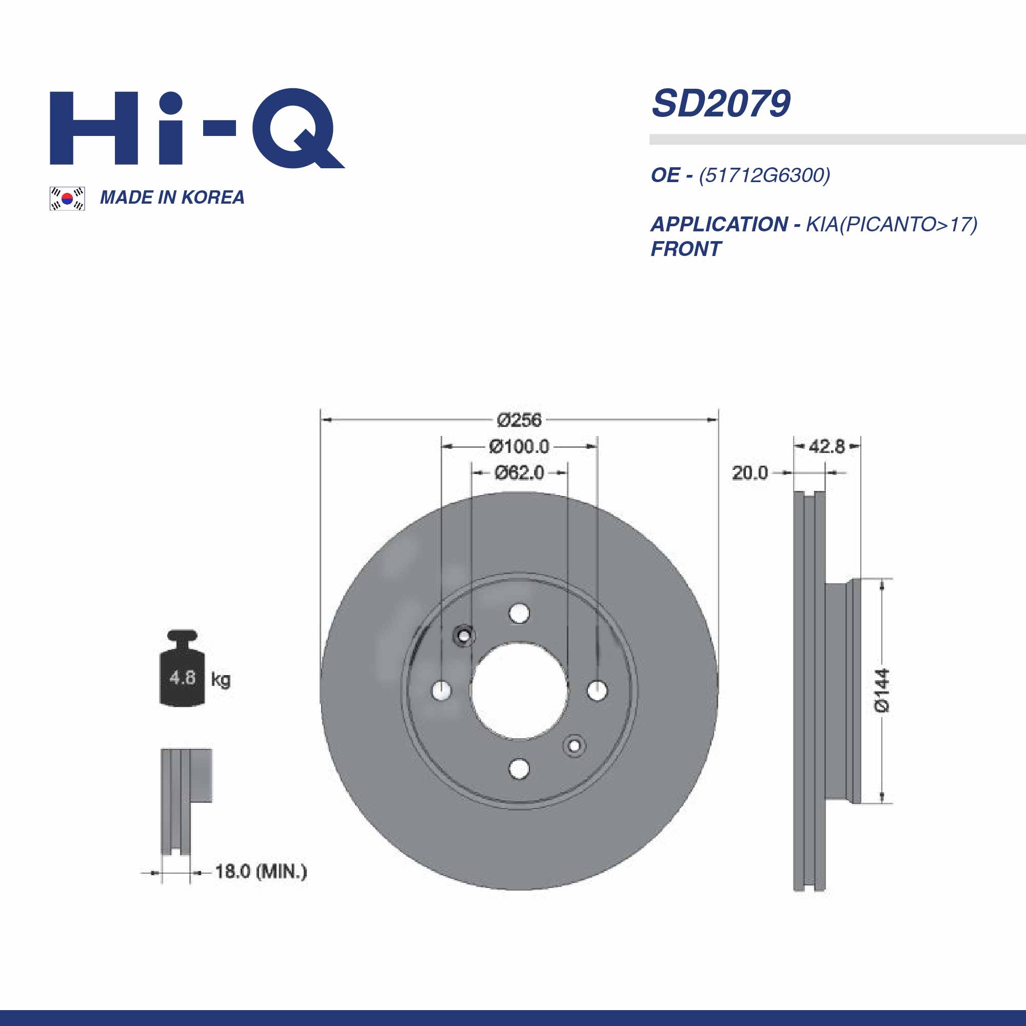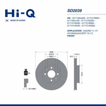 HI-Q DISC SD2039 KIA(RIO 11-17) HYUNDAI(ACCENT 10-17) FRT