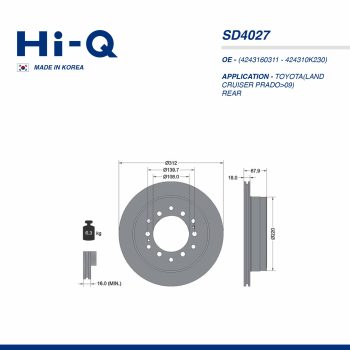 HI-Q DISC SD4027 TOYOTA(LC PRADO >09) (4-RUNNER >10)(FJ-CRUISER 06-18) RR