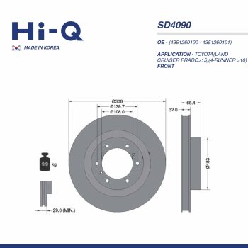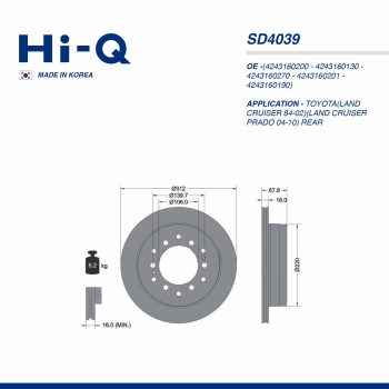 HI-Q DISC SD4039 TOYOTA(LAND CRUISER 84-02)(LC PRADO 04-10)(FJ-CRUISER 06-18) RRSelect options