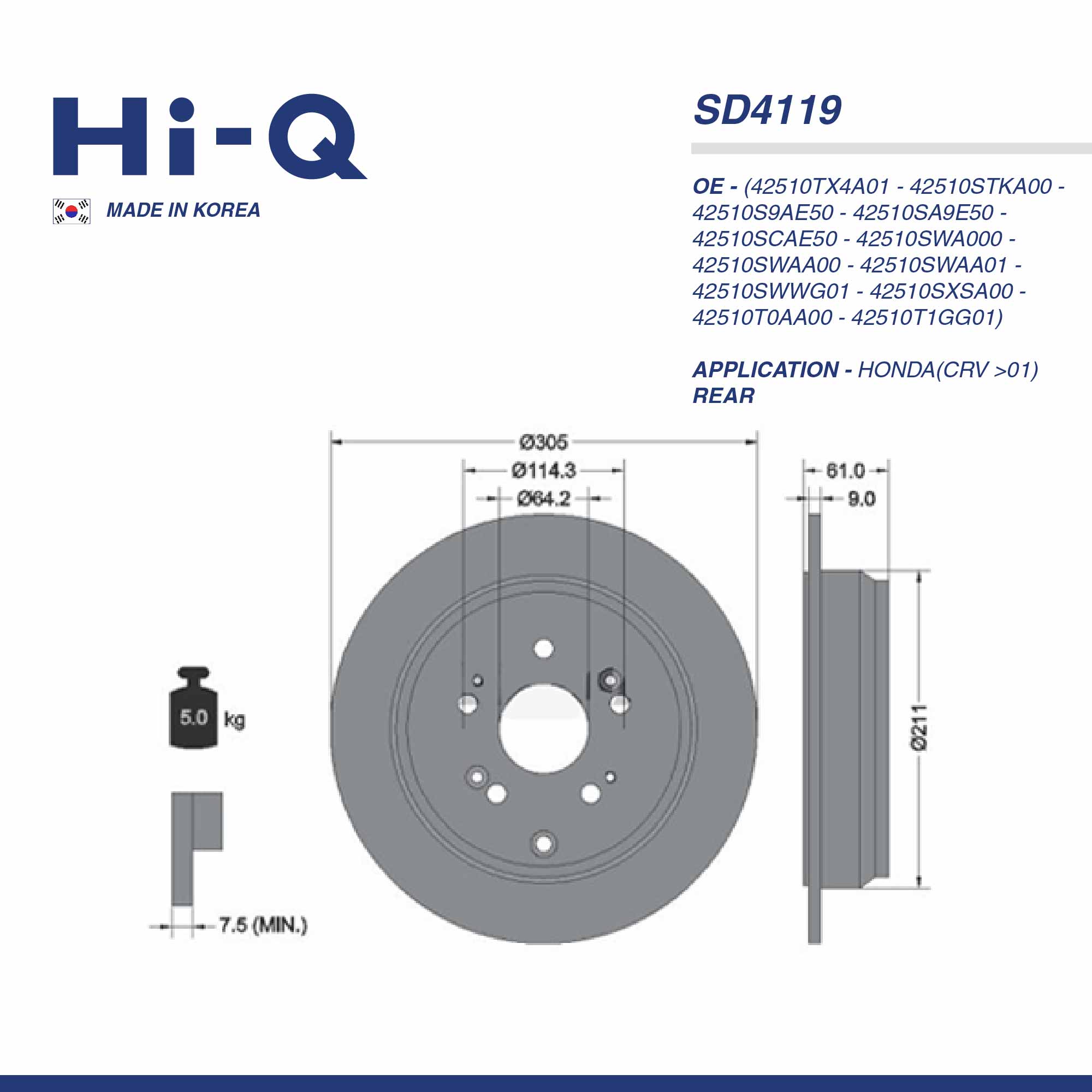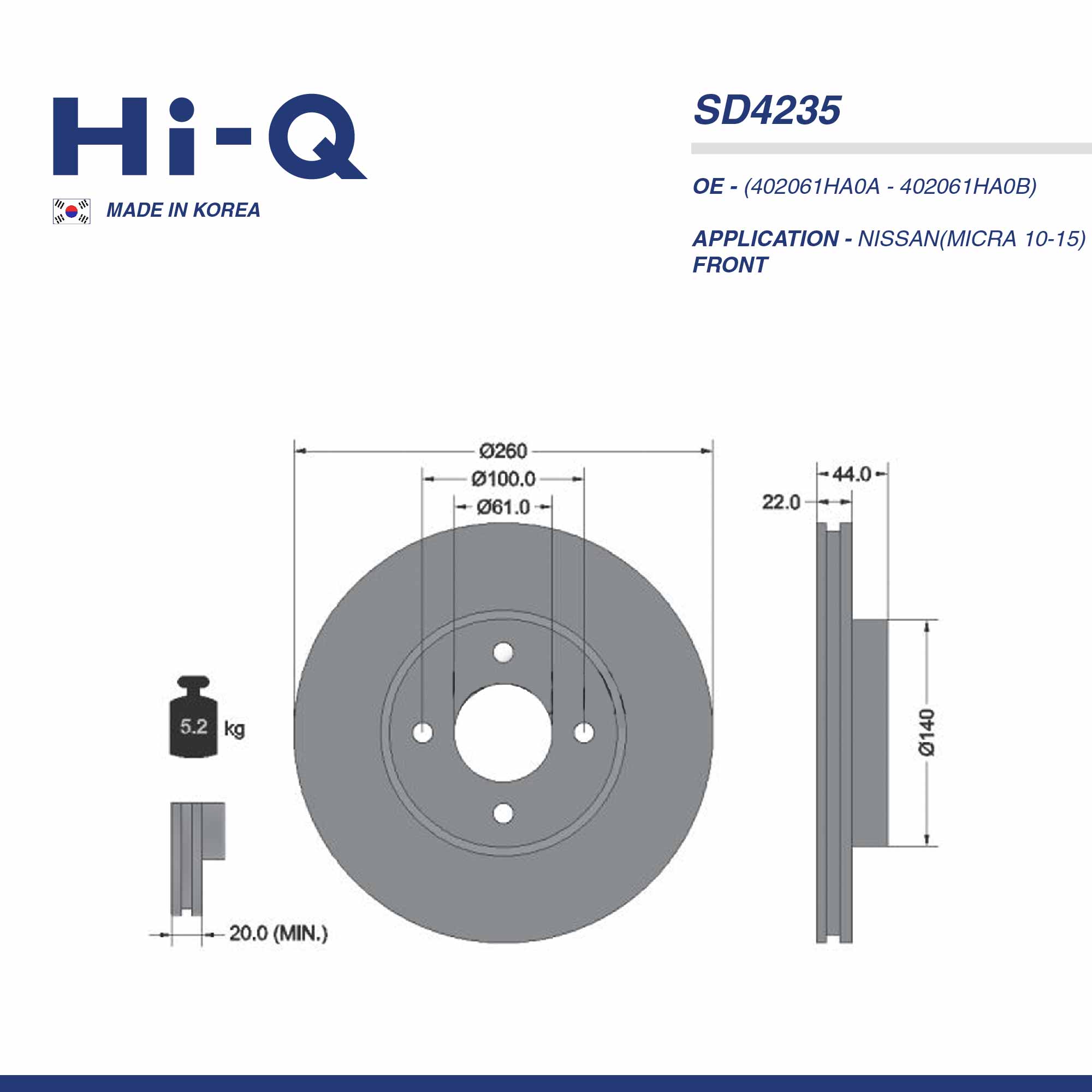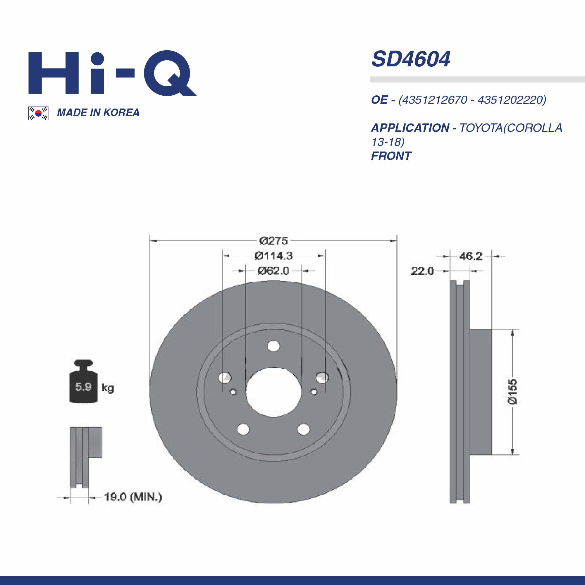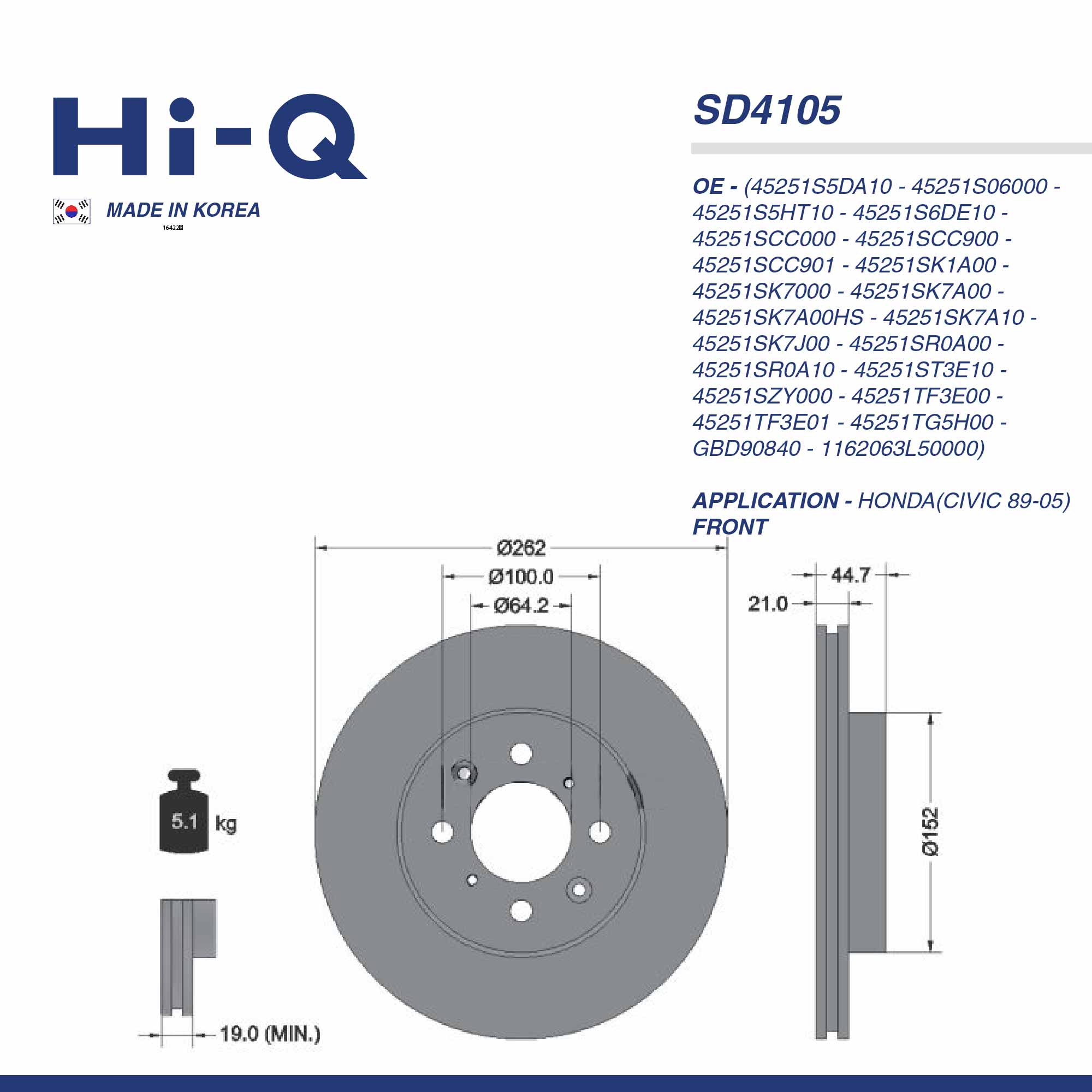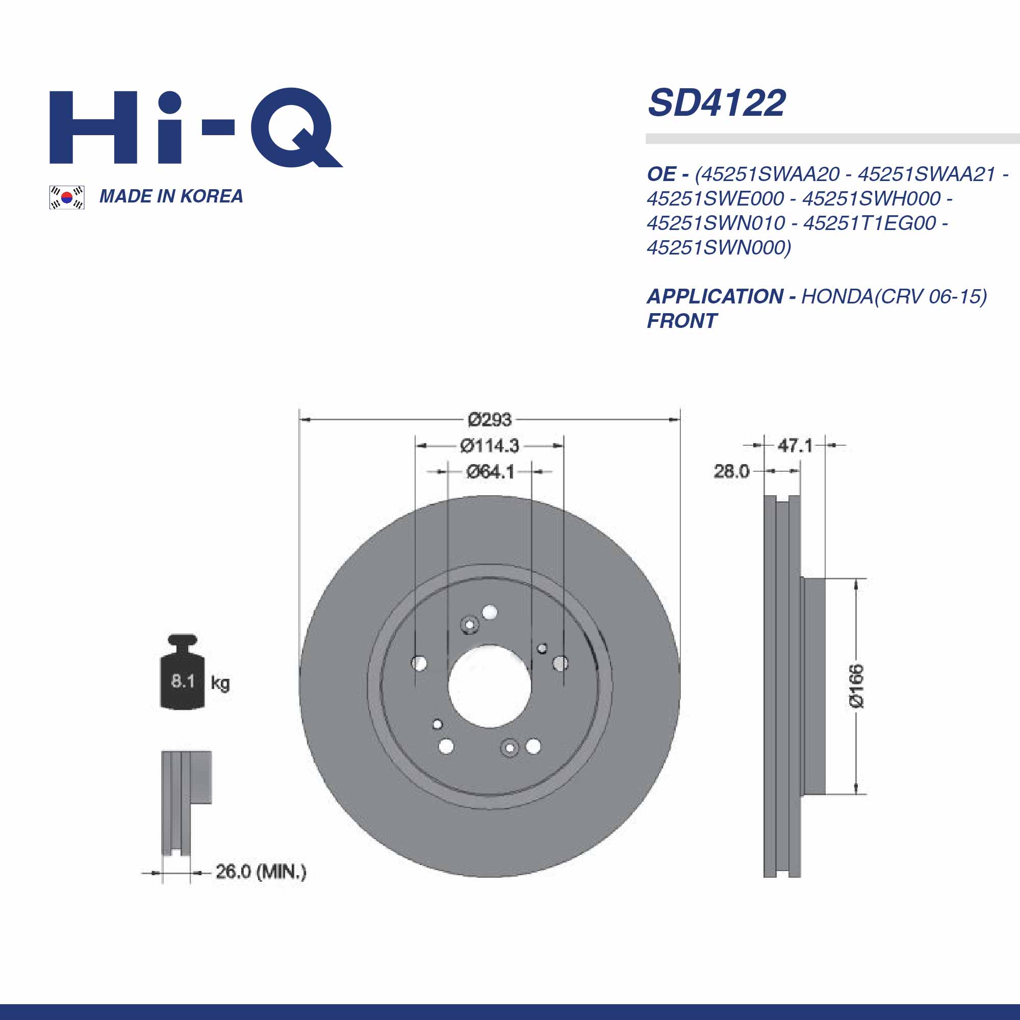 HI-Q DISC SD4110 HONDA(CIVIC 00-08)(CRV 01-13) FRTSelect options