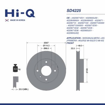 HI-Q DISC SD4225 NISSAN(ALMERA >00)(PRIMERA >90)(R32 89-93)(S13 88-93)FRTSelect options