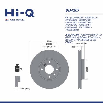 HI-Q DISC SD4207 NISSAN (TIIDA 07-12)(MICRA 03-10) RENAULT(CLIO 05-14)(LOGAN 07-15)(MEGANE 02-08) FRSelect options
