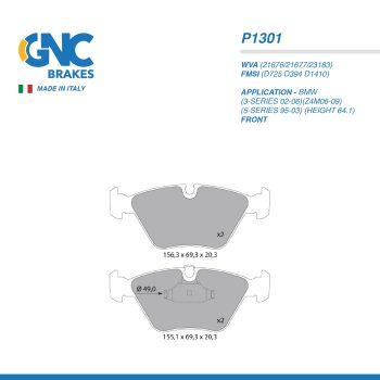 GNC PAD| P1301 BMW(3-SERIES 02-06)(Z4M 06-09)(5-SERIES 95-03) (HEIGHT 64.1) FRTSelect options