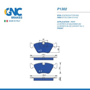 GNC PAD| P1302 BMW(3-SERIES 02-06)(Z4M 06-09)(5-SERIES 95-03) (HEIGHT 64.1) FRTSelect options