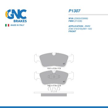 GNC PAD| P1292 BMW(1 11-12)(3 04-18)(5 01-10)(6 04-10)(7 01-08)(X1 09-15)(Z4 10-16) FRTSelect options