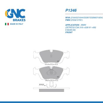 GNC PAD| P1346 BMW(SERIES3 E36 316->328 91->99) E46(99-06) FRTSelect options