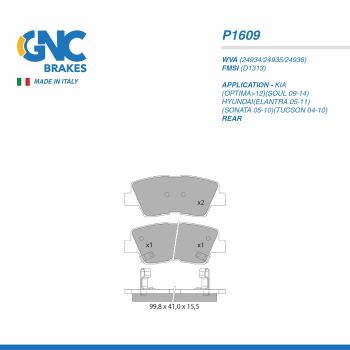 GNC PAD| P1609 KIA(OPTIMA>12)(SOUL 09-14) HYUNDAI(ELANTRA 05-11)(SONATA 05-10)(TUCSON 04-10) RR