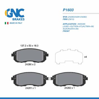 GNC PAD| P1603 NISSAN(JUKE>10)(TIIDA>07)(ALTIMA>06)SUZUKI(SX4>06) FRTSelect options