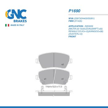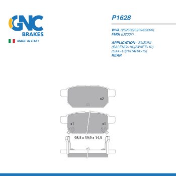 GNC PAD| P1628 SUZUKI(BALENO>16)(SWIFT>10)(SX4>13)(VITARA>15) RRSelect options