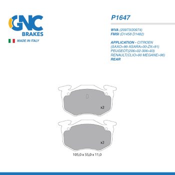 GNC PAD| P1647 CITROEN(SAXO>96-XSARA>00-ZX>91)PEUGEOT(206>02-306>93)RENAULT(CLIO>90 MEGANE>96) RR