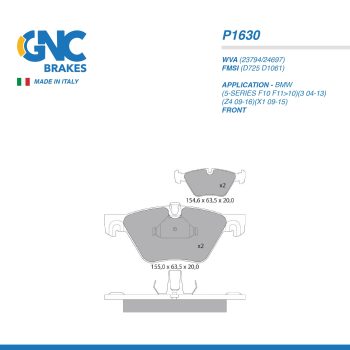 GNC PAD| P1630 BMW(5-SERIES F10 F11>10)(3 04-13)(Z4 09-16)(X1 09-15) FRTSelect options