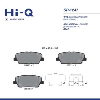 HI-Q PAD| SP-1239 HYUNDAI(ELANTRA 05-11)(TUCSON 04-10) KIA(OPTIMA 12-15) SSANYONG(TIVOLI >15) RR