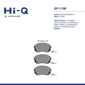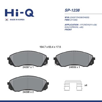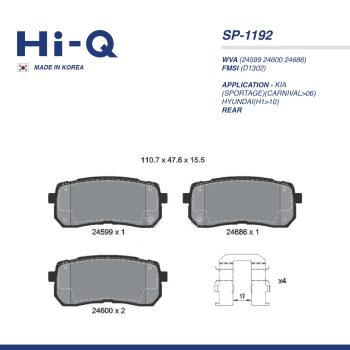 HI-Q PAD| SP-1192 KIA(SPORTAGE)(CARNIVAL>06)HYUNDAI(H1>10) RRSelect options