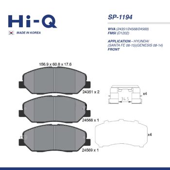 HI-Q PAD| SP-1194 HYUNDAI(SANTA FE 06-15)(GENESIS 08-14) FRTSelect options