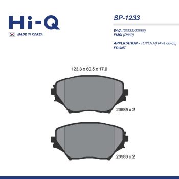 HI-Q PAD| SP-1244 TOYOTA(CELICA 99-05)(COROLLA 01-04)(YARIS 99-05) FRTSelect options