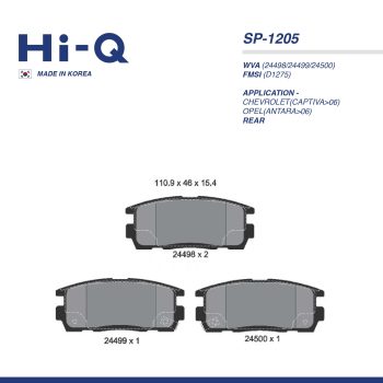 HI-Q PAD| SP-1205 CHEVROLET(CAPTIVA>06)OPEL(ANTARA>06) RRSelect options