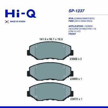 HI-Q PAD| SP-1237 HONDA(ACCORD 03-08)(CIVIC>14)(CRV 01-07) FRT