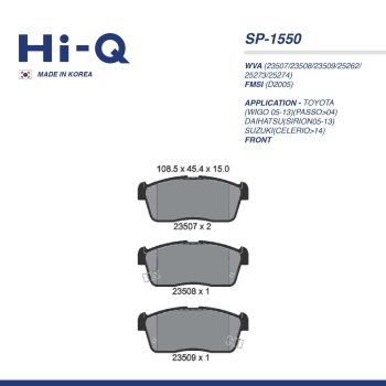 HI-Q PAD| SP-1550 TOYOTA(WIGO 05-13)(PASSO>04) DAIHATSU(SIRION 05-13)SUZUKI(CELERIO>14) FRTSelect options