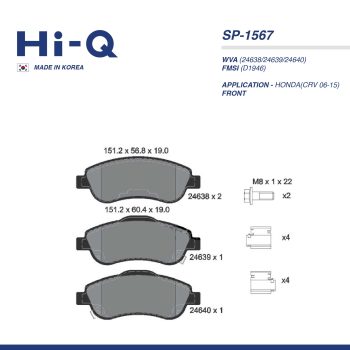 HI-Q PAD| SP-1564 NISSAN(MICRA 03-10) SUZUKI(SWIFT>05)RENAULT(CLIO>12)(KANGOO>08)(DUSTER>10) FRT