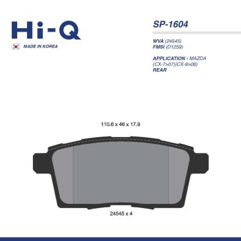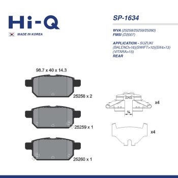 HI-Q PAD| SP-1634 SUZUKI(BALENO>16)(SWIFT>10)(SX4>13)(VITARA>15) RRSelect options