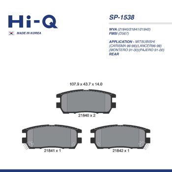 HI-Q PAD| SP-1611 DAIHATSU(CUORE>03) MITSUBISHI(MIRAGE>12) FRTSelect options