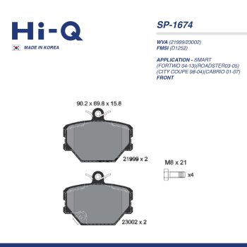 HI-Q PAD| SP-1690 HYUNDAI(SANTA FE 18-20) KIA(SORENTO >15) FRTSelect options