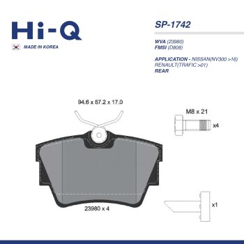 HI-Q PAD| SP-1714 INFINITI(Q50 >13) NISSAN(X-TRAIL >14) RENAULT(KOLEOS >16) FRTSelect options