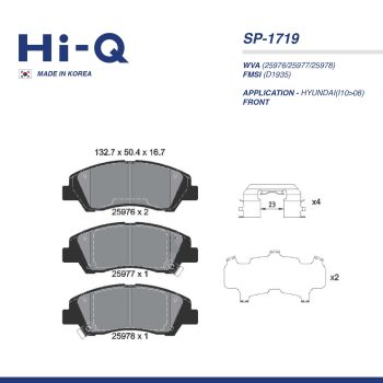 HI-Q PAD| SP-1720 HYUNDAI(VELOSTER 12-17)(I30 11-16) KIA(FORTE>14)(OPTIMA>10) FRTSelect options