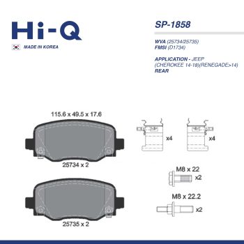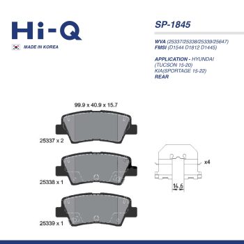 HI-Q PAD| SP-1845 HYUNDAI(TUCSON 15-20) KIA(SPORTAGE 15-22) RRSelect options