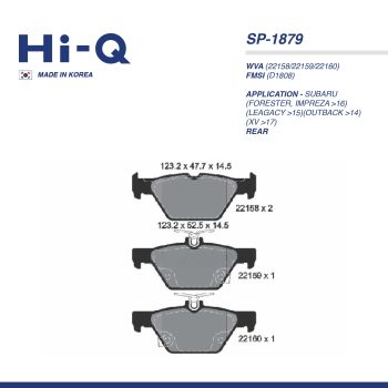 HI-Q PAD| SP-1879 SUBARU(FORESTER, IMPREZA >16)(LEAGACY >15)(OUTBACK >14)(XV >17) RRSelect options