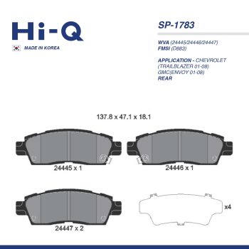 HI-Q PAD| SP-1783 CHEVROLET(TRAILBLAZER 01-08) GMC(ENVOY 01-08) RRSelect options