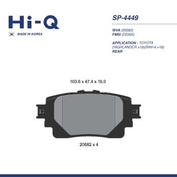 HI-Q PAD| SP1117 HYUNDAI(ELANTRA 05-11 SONATA 98-10 TUCSON 06-10) KIA(OPTIMA>10 SPORTAGE 04-10) RR