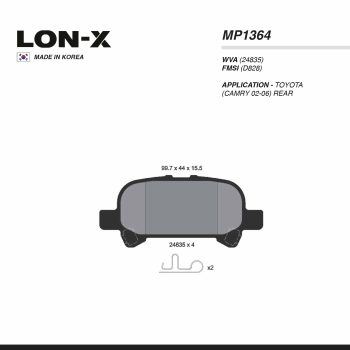 LON-X PAD| MP2044 TOYOTA(YARIS 99-05)(COROLLA 01-04)