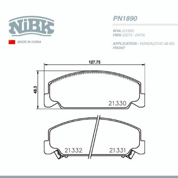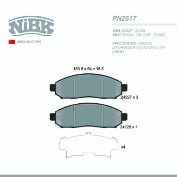 NIBK PAD| PN2475 NISSAN(URVAN>99) ISUZU FRT (DB-1769,D1253)