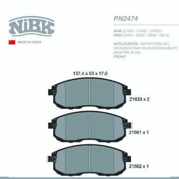 NIBK PAD| PN2474 INFINITY(I30>97)NISSAN(ALTIMA 96-06)(MAXIMA 88-91)(SENTRA 00-06) FRTSelect options