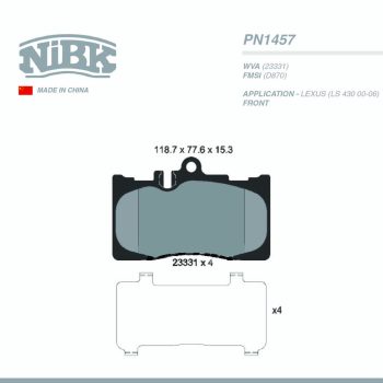 NIBK PAD| PN9805 NISSAN(MICRA 03-10) SUZUKI(SWIFT>05) FRT (CD1261)Select options