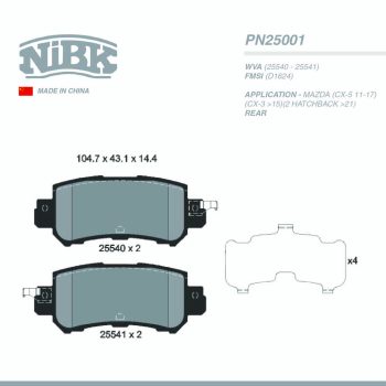 NIBK PAD| PN25001 MAZDA (CX-5 11-17)(CX-3 >15)(2 HATCHBACK >21) RRSelect options