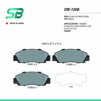 SB PAD| DB-1206 HONDA(CRV 95-01)(ACCORD 91-03)(CIVIC 97-01) FRTSelect options