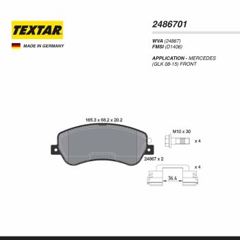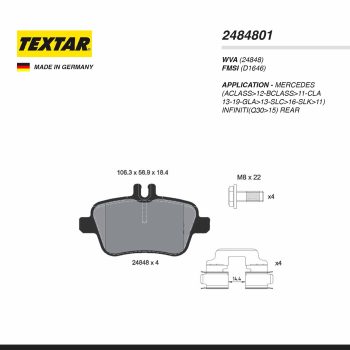 TEXTAR PAD| 2484801 MERCEDES(ACLASS>12-BCLASS>11-CLA 13-19-GLA>13-SLC>16-SLK>11)INFINITI(Q30>15) RR