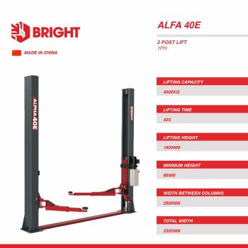 BRIGHT 2 POST LIFT ALPHA 40E 1PH رافعة عامودين ٤ طن توصيل من تحت خط واحدSelect options