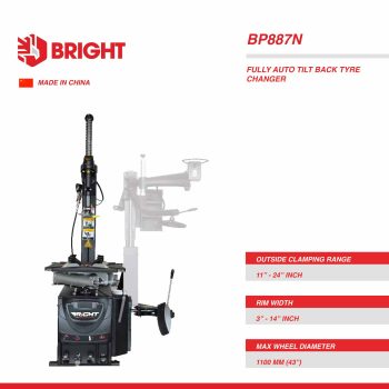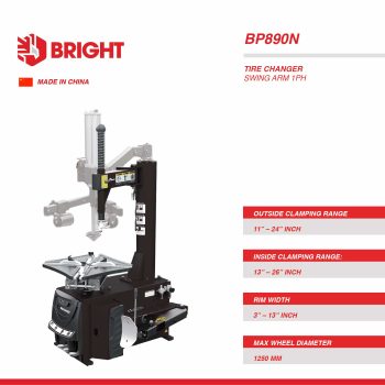BRIGHT TIRE CHANGER BP890N 12-26″ SWING ARM 1PH مكنة غيار دولاب سيارة زند جنب خط واحد