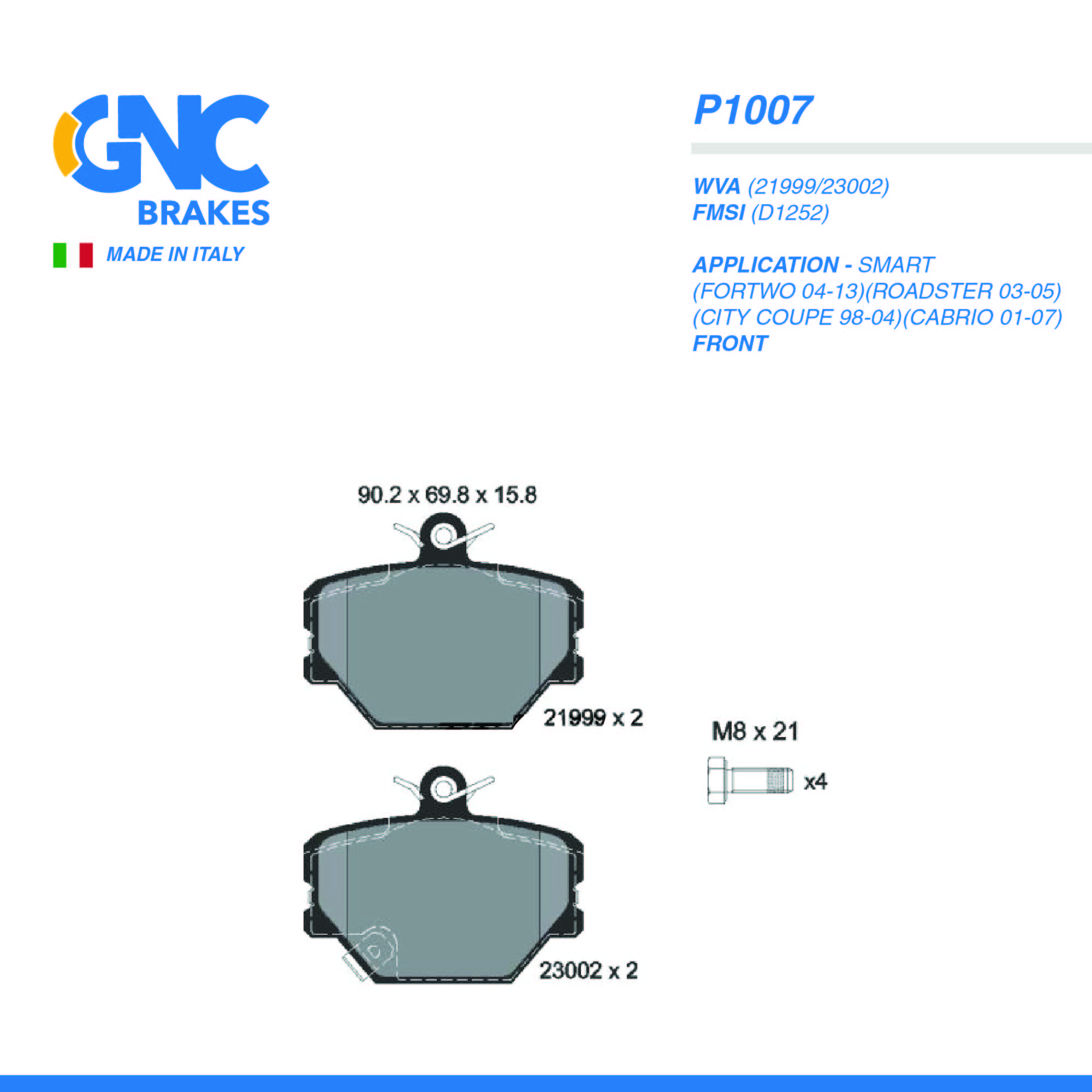 GNC PAD| P1007 SMART(FORTWO 04-13)(ROADSTER 03-05)(CITY COUPE 98-04)(CABRIO 01-07) FRT