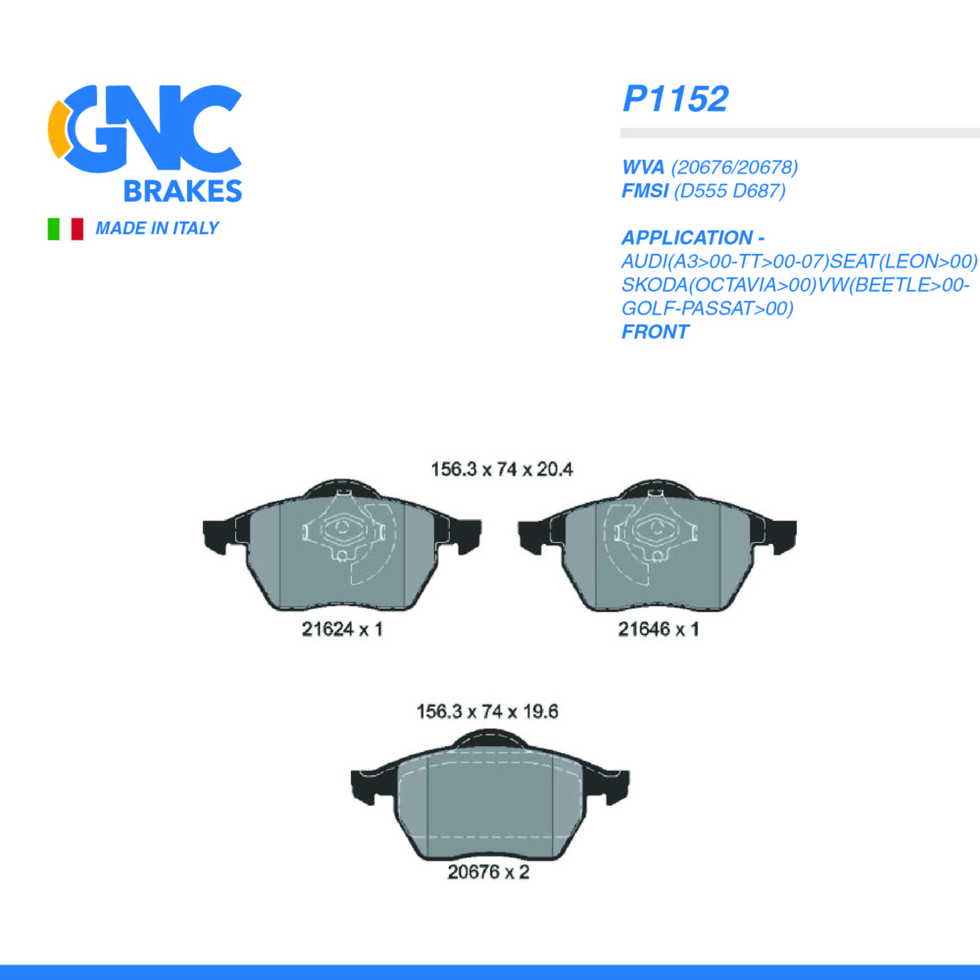 GNC PAD| P1152 AUDI(A3>00-TT>00-07)SEAT(LEON>00)SKODA(OCTAVIA>00)VW(BEETLE>00-GOLF-PASSAT>00) FRT