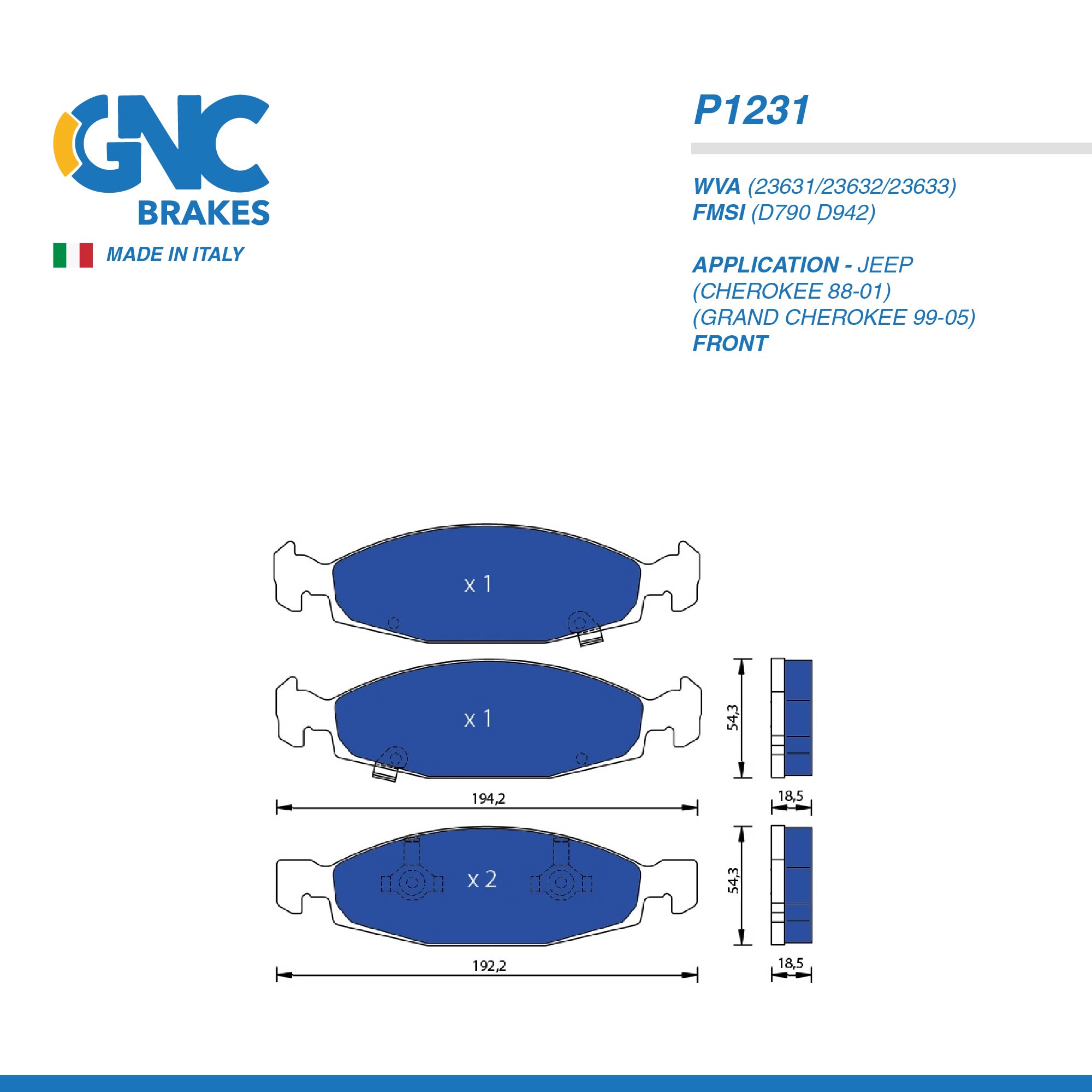 GNC PAD| P1231 JEEP (CHEROKEE 88-01) (GRAND CHEROKEE 99-05) FRT