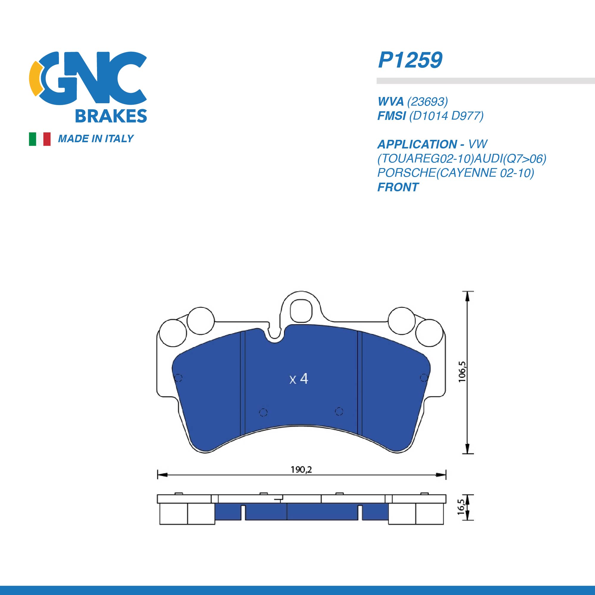 GNC PAD| P1259 VW(TOUAREG 02-10)AUDI(Q7>06)PORSCHE(CAYENNE 02-10) FRT