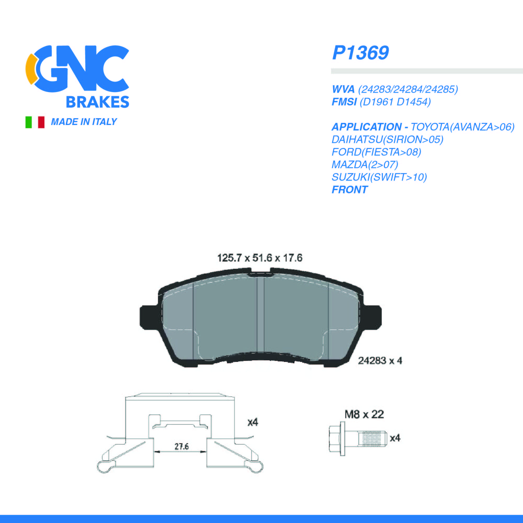 GNC PAD| P1369 TOYOTA(AVANZA>06)DAIHATSU(SIRION>05)FORD(FIESTA>08)MAZDA(2>07)SUZUKI(SWIFT>10) FRT
